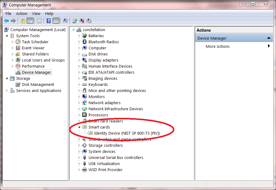 Back to the GoldKey. As hinted earlier, the PIV application on the token supports provisioning as card holder. The catch is that requires installing additional software. This is an unintended side-effect of the way discovery works in Windows: The GoldKey token presents itself as a plain smart card and reader combination, the OS will automatically try to infer the type of card. One of the steps in this process is to check for PIV and GIDS cards by selecting the well-known AID for those standards. By design the token responds successfully to a SELECT for PIV. But that leads the OS to conclude that this is “just” an ordinary PIV card and associate it with the built-in driver. This can be observed by expanding the “Smart cards” node in Device Manager: